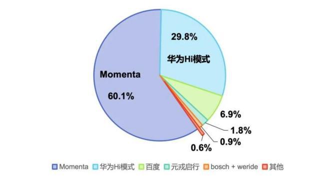 根据佐思汽研数据,当前中国 NOA(导航辅助驾驶)市场中,Momenta 以 60% 的市占率稳居第一梯队,华为 HI 模式凭借约 30% 的份额紧随其后,其余企业的市场占比合计约为 10%。