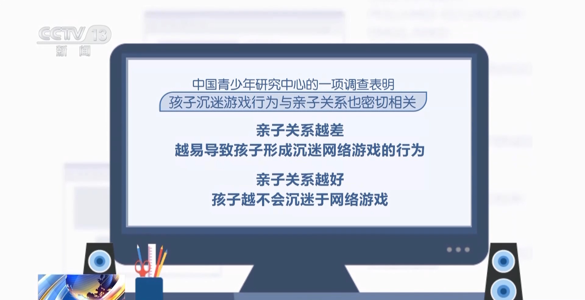 中国青少年研究中心少年儿童研究所所长 孙宏艳:我们把家庭的养育方式分为几种,一种是民主型的养育方式,爸爸妈妈能够跟孩子民主协商,能够做朋友。民主型的家庭,孩子也有沉迷游戏的,沉迷率只有2.7%。如果是那种专制型的,沉迷率达到了9.7%,如果是放任型的,爸妈干脆就不管甩手掌柜的那种,达到了11.7%。我们呼吁家长,好的关系胜过好的教育。再一个就是亲子关系建设方面,我们也跟家长说亲子关系要亲密有间,不是亲密无间的亲子关系,要给孩子一点点空间。在网络时代,未成年人经常在很多产品的使用上是跑在父母前面,所以父母也要多向孩子学习,要两代人共同成长。
